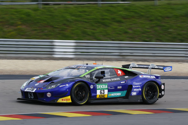 Als letztes Rennen des Wochenendes am Sachsenring startete das 2. Rennen der ADAC GT Masters. Bereits in der ersten Kurve nach dem Start stellte sich durch eine Rempelei der Landgraf AMG Mercedes quer. Durch das verursachte Gedränge kamen mehrere Fahrzeuge zu Schaden bzw. wurden durch den Rennunfall aufgehalten. Das Safetycar wurde auf die Strecke geschickt. Betroffen vom Unfall waren der Landgraf AMG, der Land Motorsport Audi R8 von Luca Sandro Trefz und Christopher Haase, der SSR Performance Porsche und der Porsche von Joos Sportwagentechnik. Der Land Audi und der SSR Performance Porsche konnten das Rennen weiter fortsetzen. Nach dem das Safetycar wieder die Strecke verlassen hatte, konnte sich nach dem Zakspeed AMG beide Lamborghini Huracan von GRT einreihen. Dahinter der T3 Huracan von Mapelli und der Toksport WRT AMG. Der drittplatzierte GRT Huracan mit Costa Balboa bekam aufgrund des Rennunfalls eine Durchfahrtstrafe und verlor wertvolle Plätze. Ein paar Runden später wurde der T3 Huracan von Paul/Mapelli durchgereicht. Hart umkämpft wurde der 2. Platz in der letzten Runde. Der Toksport WRT AMG konnte in der letzten Kurve den GRT Huracan mit Ineichen überholen. Zusätzlich schlüpfte der Bernhard Porsche noch auf den 3. Platz. Somit blieb Rolf Ineichen nur ein undankbarer 4. Platz. Einen unspektakulären aber durchaus passablen Start-Zielsieg mit fast 16 Sekunden Vorsprung fuhr der Zakspeed AMG von Igor Walilko und Jules Gounon
