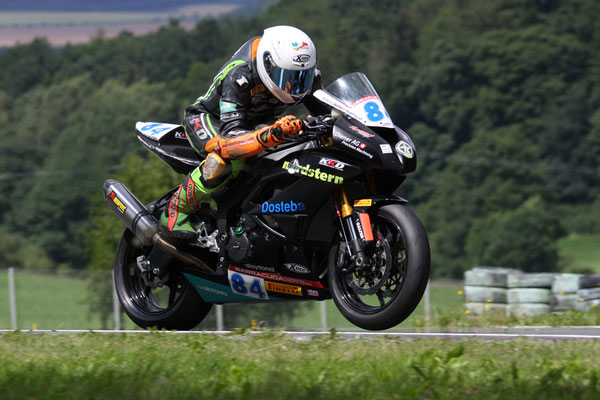 Das Nonplusultra der Supersport 600 ist der österreicher Thomas Gradinger. Punktgleich mit 70 Meisterschaftspunkten kam Thomas Gradinger und Kevin Wahr nach Schleiz. Auf dem Heimweg konnte Gradinger weitere 50 Punkte sein Eigen nennen und ist vor den Rennen in Assen Meisterschaftsführender mit 120 Punkten. Kevin Wahr, der die Pace von Gradinger nicht mithalten konnte, wurde hinter Max Enderlein vom Freudenberg Racing Team in den beiden Rennen dritter. Janusch Prokop wurde im 1. Rennen vierter. Im 2. Rennen kam Prokop zu Sturz und konnte sich nicht platzieren. Jonas Geitner vom Kawasaki Schnock Team Motorex konnte im 2. Rennen auf den vierten Platz fahren.