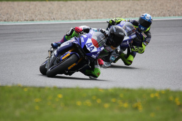 Aber auch Chris Stange tratt das erste Rennwochenende in Oschersleben mit der Startnummer #44 an. Hier fuhr er eine Yamaha YZF-R6 von mvr-Racing. 24 Punkte bei beiden Rennen war die Ausbeute.