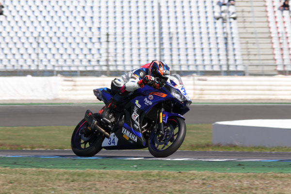 Der Niederländer Noah Bronkhorst startet mit seiner Yamaha YZF-R3 in der Supersport 300 Klasse der IDM. Seine Startnummer, die #34. Noah belegte den 13 Gesamtrang in der Saison 2018. 54 Punkte