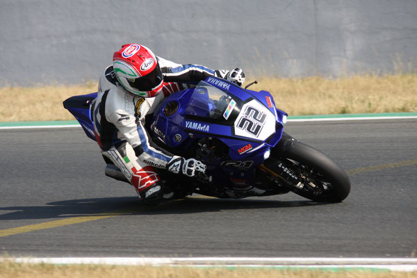 Lorenzo Lanzi aus Italien pilotierte die MGM Yamaha in der IDM Superbike in Oschersleben zur German Speedweek und in Assen. Auf der YZF-R1 prangte die #22.